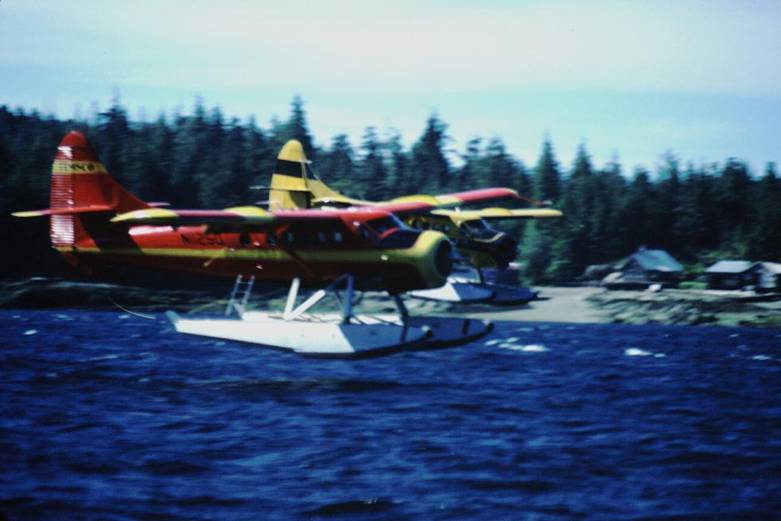 SHOT OF THE MONTH February 2008 by Thor Johnson N11250 (red) and N511BW (yellow) formation landing the harbour in Ketchikan during the summer of 1987
